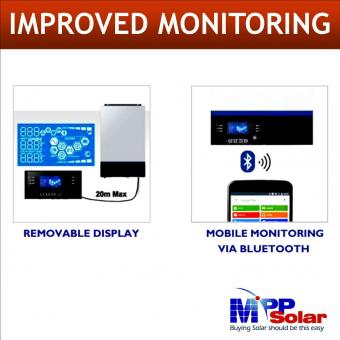 Performantele sistemului fotovoltaic se monitorizeaza in timp real, se pot modifica parametrii de functionare ca sursa principala de energie, tipul de baterii solare utilizate sau tensiunile procesului de incarcare.
